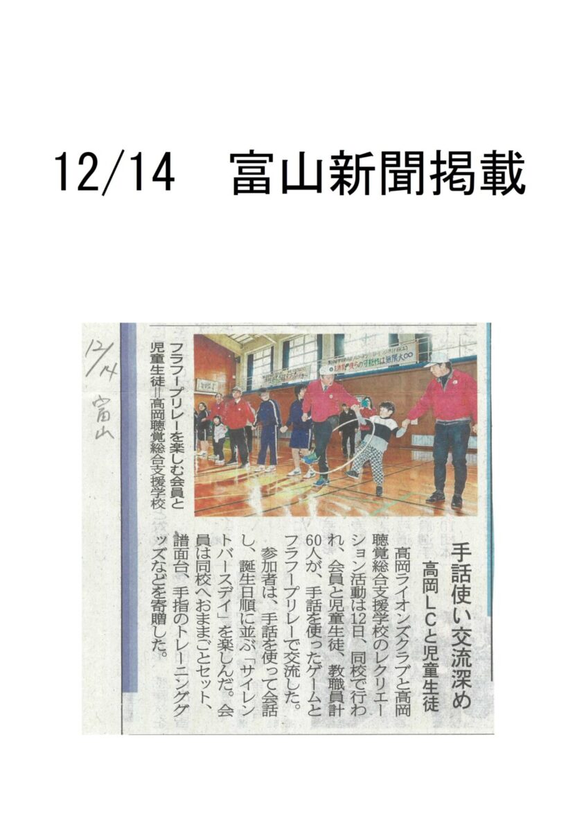 | 2025年12月12日(金) 於:富山県立高岡聴覚総合支援学校 体育館 【継続47年】参加者:ライオン10名 生徒30名 |
