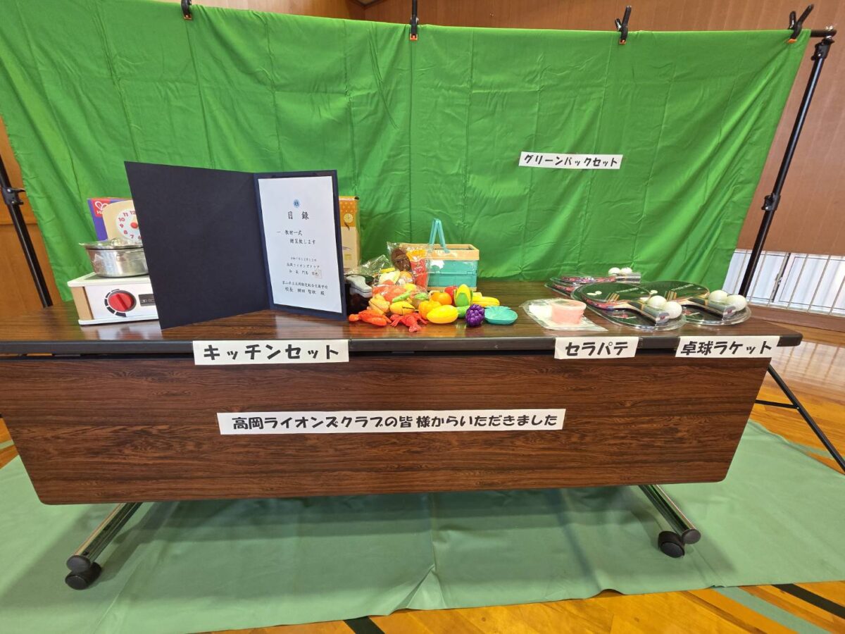 | 高岡ライオンズクラブからの寄贈品です。大きな緑の布は画像制作時に使用する背景になるものです。本格的なんです! |