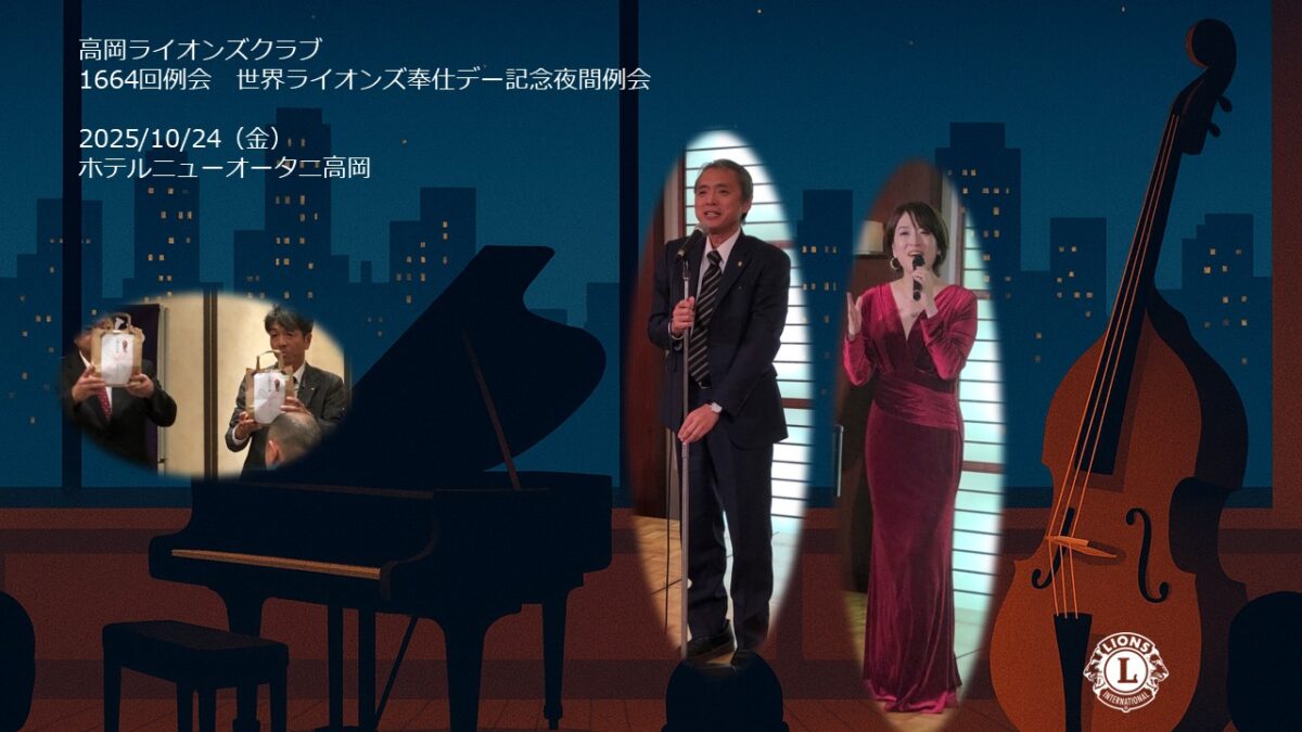 | 世界ライオンズ奉仕デーを記念し、夜間例会を開催いたしました。奉仕の心を新たにしながら、心地よいジャズの調べに包まれた上質な時間を過ごしました。音楽とともに仲間の絆を深め、改めてライオンズとしての使命と喜びを感じるひとときとなりました。 |