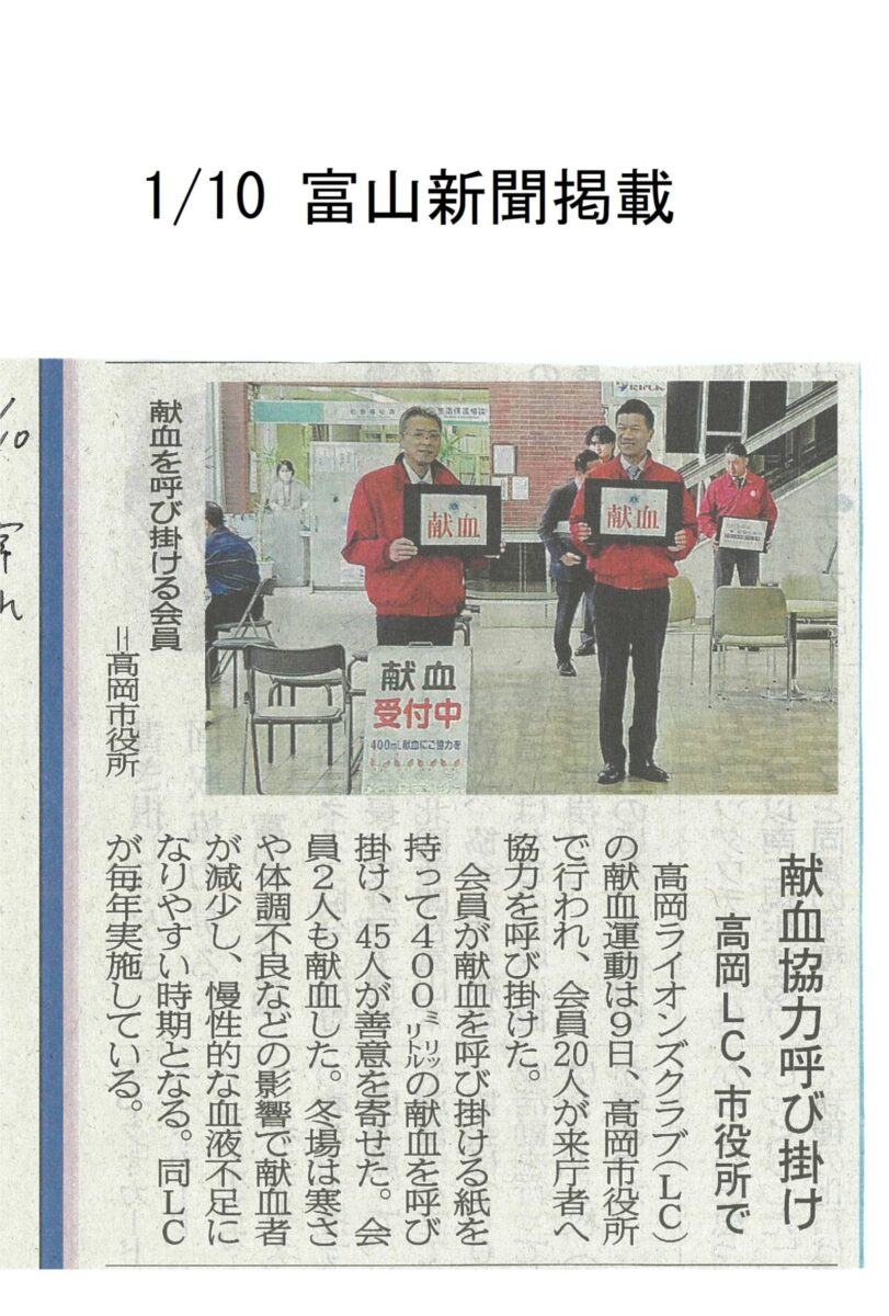 ホーム > お知らせ | 活動報告 > 献血運動in高岡市役所・2026新春