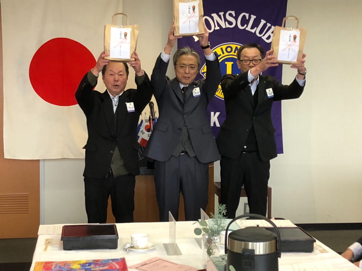 | =例会次第= 12:15 開会ゴング 国旗に敬礼 国歌・ライオンズクラブの歌斉唱 会長挨拶 旭日双光章受章お祝い L小竹 茂樹 誕生月お祝い 3名 |